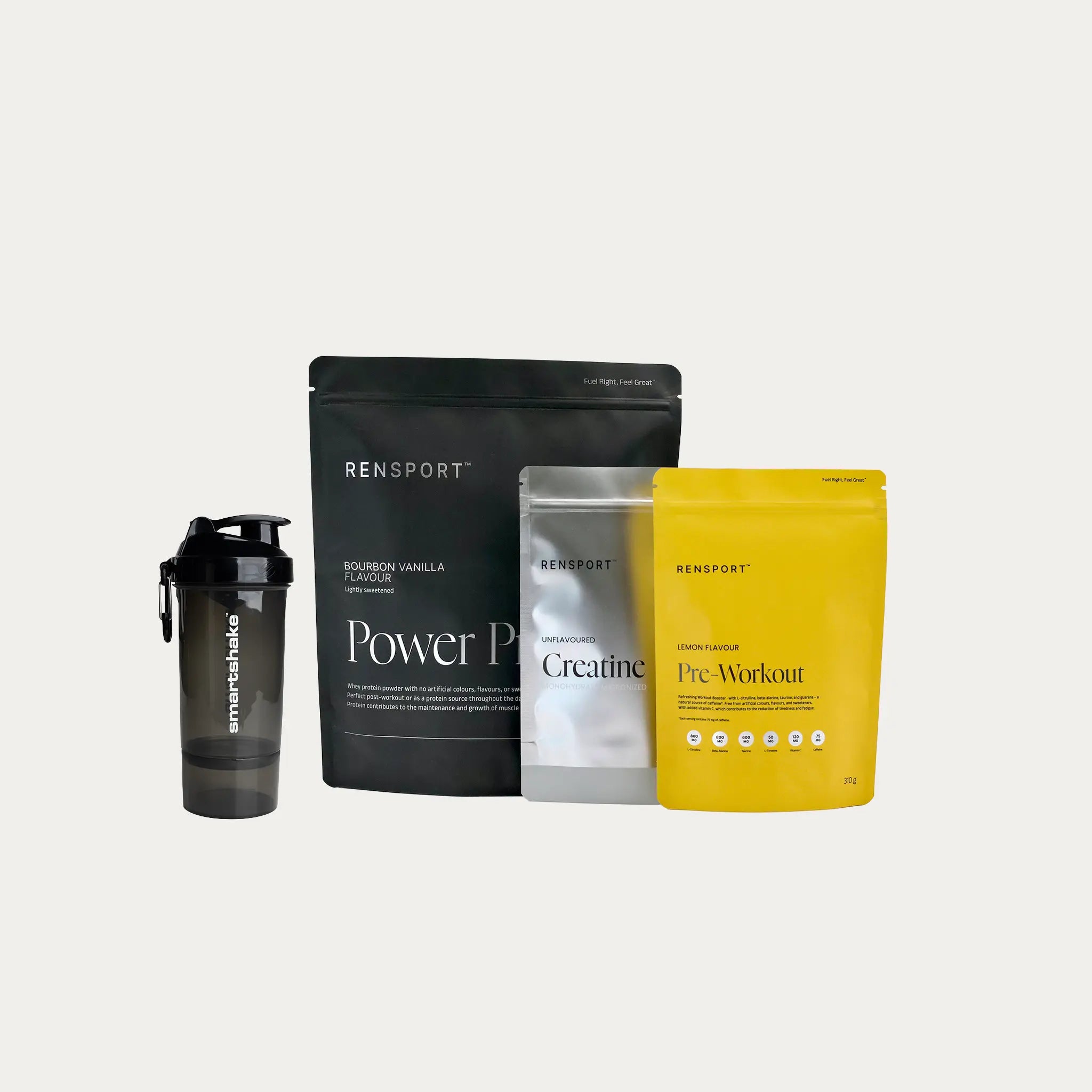 Bundlen kombinerer tre essentielle produkter, der tilsammen dækker forberedelse, performance og restitution. Et simpelt, effektivt setup til træning uden kompromiser.